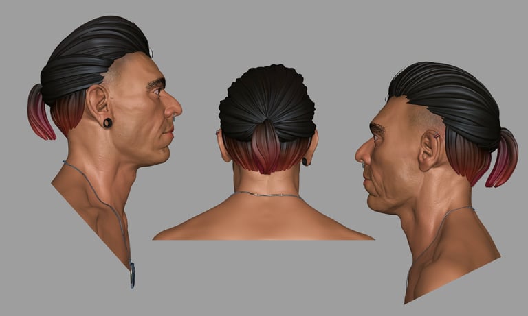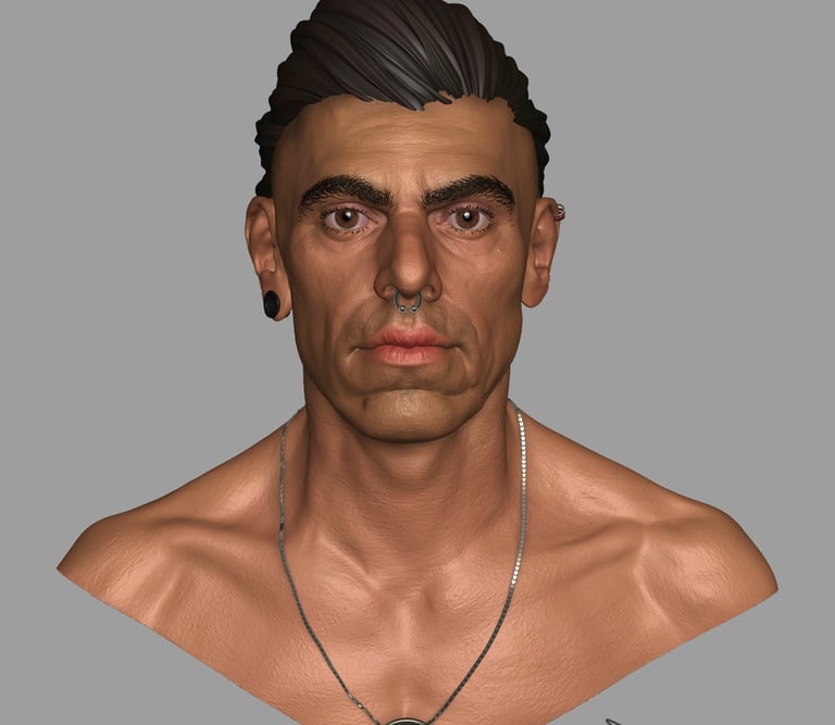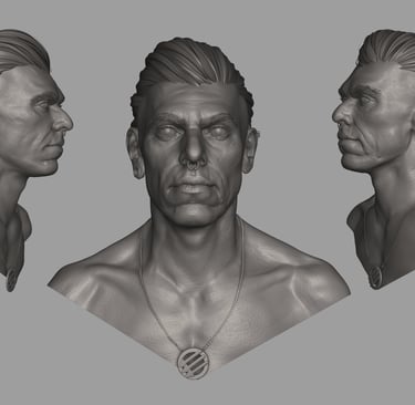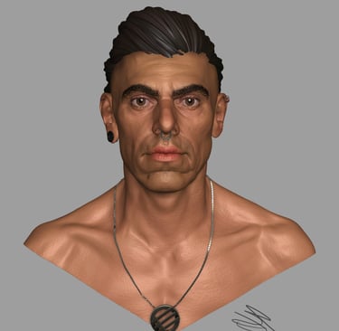 This is a bust I've made as a practice exercise when I was taking the “Anatomy for Characters” course, held by the brazilian sculptor, 3D modeler and teacher Rafa Souza.