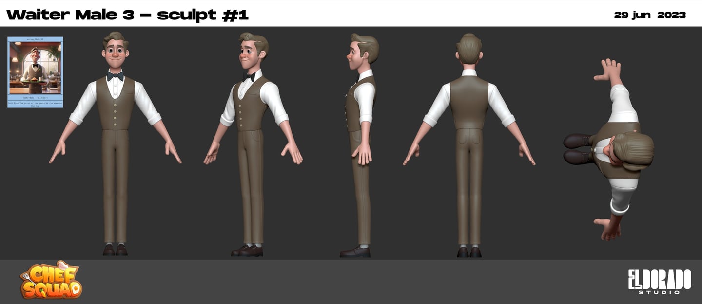 Our team had to model several waiters characters to serve as NPCs for Chef Squad in a really short time. These are the models that I was responsible for, under the supervision of Eiti Sato.