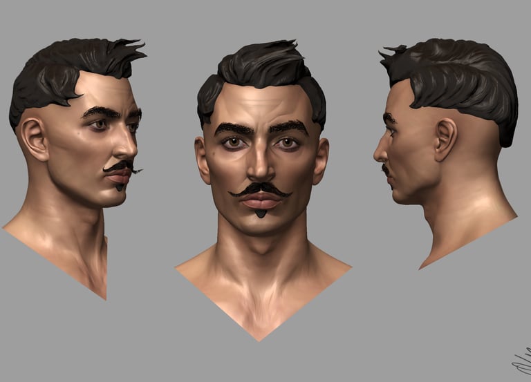 The hair is only an early blockout so far, because he’s going to have hair cards. Next I’m moving for the next steps which are the lowpoly topology, UVs and bake.